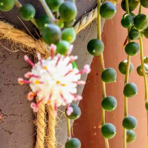 グリーンネックレス🌱 当初、友達から5粒位の切れ端をもらったものがあれよあれよと増えて挿しまくってるグリネさん 花が咲いたのは初めてでした🌼 改めて見ると不思議な花ですなぁ🤔 やっぱり花が咲くと嬉しくなりますね👌
