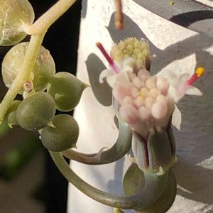 グリーンネックレスのお花が咲いた♩😊 なかなか上手く育ててあげれていないグリーンネックレス。 丸が、ペコンとへこんでしまっているのは水切れ??? ( •́ ̯•̀ )????