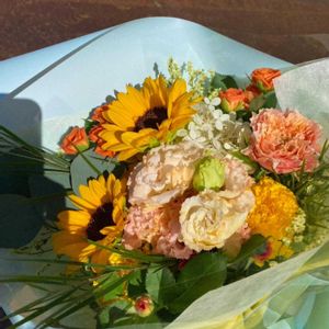 友達の結婚をお祝いしてきました💐 花束のイメージは黄色やオレンジで注文させていただきました💛🧡 とても素敵な花束にしてもらい、友達も泣いて喜んでくれてわたしもとっても嬉しかった🥰💐