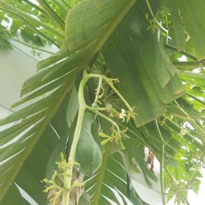 (ビデオ付き投稿)2年前に性転換手術をしたパパイヤ(雌雄異株)の雄木、最後に残った木がようやく結実しました。 詳しい内容は私のYouTubeチャンネルのビデオにアップしましたのでそちらをどうぞ。例によって八重桃のmatisiaアイコンをタップしてmy albumへ行き、そこからまた八重桃のmatisiaアイコンをタップすると、YouTubeチャンネルへのリンクが出ますので、そこから行けます。よろしかったらチャンネル登録して頂ければ、新アップロードしたビデオのお知らせが届く様になります。 だけど手術しても必ず結実する物でもない様ですので、雌木を接木するか植え直す方が早くて確実な様です。