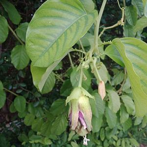 ん?この交配種トケイソウ、枯れた花弁から果実が出て初結実しそうな様子。 何れも食用のオオミノトケイソウとブラジルトケイソウの交配種だけど、味はどうなのだろう?