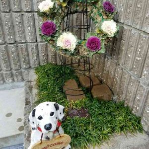 ご挨拶。我が家の門番です。 葉牡丹のリースとお出迎え❗