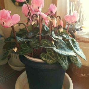 スーパーで半額になっていた シクラメン❁ まだまだ蕾があって咲きそうです(^^♪ 意外と香りがあるんですね! とって可愛い♡