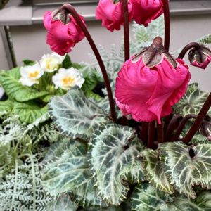 冬の寄せ植え☃️シクラメン(変わり咲き)・プリムラ ジュリアン シクラメンはウィンターベル🔔だったかな?ふわもこかなぁ? 青色シクラメンも欲しいです💫
