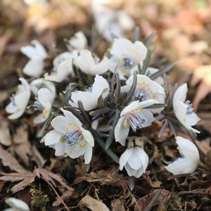 おはようございます😊 雪割草展示会② 今日は白系の雪割草です♡♡ 一重咲きのものから千重咲き、また花びらの形も様々で見応えがあります。 2枚目は白と言うよりクリーム色、花びらの形も特徴的ですね💛 🏷山野草マニア 🏷日曜日は素敵なpicを