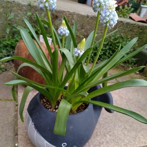 🌿💙ムスカリ💙🌿咲きました~🤗 昨年購入した🐳クジラの鉢に🥰