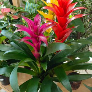 園芸店で見かけたグズマニアです。 こんなに綺麗な植物があったなんて…昇天😇 屋内撮影、色補正なしです❣️なんて鮮やか! パイナップル科らしくトロピカル🏖な雰囲気です✨ 電車で行ったので持ち帰りのこととか、その後の管理のこととか考えて、入手は一旦断念しました💦 強い憧れを残して、一旦サヨナラ🍃