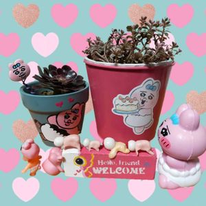 今日は、🏷おぱんちゅの日 1枚目 みたりん産のセクシーおぱんちゅバニーガール鉢👯♀️🎶可愛いで(*´³`*) ㄘゅ💋💕 胴切りした黒法師さんを𝙸𝙽🖤.*・゚ 2枚目 レウィシアのお花がいっぱい咲いてきたよ〜🌸🌸🌸 まみこさんに頂いたおぱんちゅシールを貼ったピンクのリメ缶🎀💕💗 みたりん産のおぱんちゅボードもキャワ(*´ `*)♡イイ💕 3枚目 🏷センペルンルン木曜日 家のセンペルちゃんたち〜 みっちゃんに頂いたセンペルちゃんたち、のりたましゃんに頂いたポメラニアン鉢も𐔌՞⁔ •𖥦•⁔՞𐦯カワユス🤍 もうすぐ9日なので黒法師の日も付けちゃおꉂ🤣𐤔💕