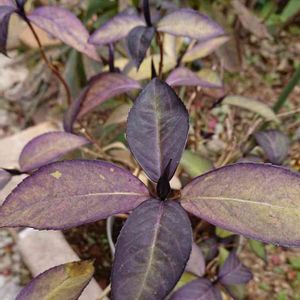 小さな庭の 常緑アジサイの葉 渋くて好き💚💜🖤 外は少し陽射しが射してきた🌤️