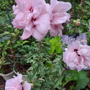 去年同時にお迎えしたムクゲ 斑入りの葉の「シュガーディップ」と「マゼンタシフォン」が咲き始めました·̩͙ᜊ( •ᴗ• )ᜊ·̩͙