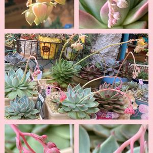 多肉棚の寄せ植えが花盛り🌸🌼🌸🌼 いつ切ろうか✂️迷うところ……😅 🏷夜なべっこ