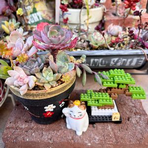 毎月5日は LEGOと植物と。 群生の日🏷️ ちょっと、和テイストでお送りしております😆 LEGOと植物と。 苔玉七宝樹と松虫さんです。 向かって左の桜🌸と 鉢に止まってるメジロは DAISOプチブロック 向かって右の桜🌸梅?に見えるのが seriaキッズブロックです。 七宝樹、いただいてからだいぶしっかりしてきて、葉も増えつつありますね👍ただ、ずーっと傾いとる🤣 アドロミスクス松虫 何で松虫?って思うんやけど この子自体に虫っ気ほぼ無いのだけどね💕葉っぱの形が コオロギとか鈴虫の🦗鳴いてる時の羽に似てるからっぽいね😆 昔は鈴虫のことを松虫と言ったらしいのでそっちかなぁなんて思ってます👍 群生の日 植え替えたチョコチップ わっさーなってますわ😊 しかし、本当の群生って最後の ミロッティみたいなののことを言うんだろうね😄 最近まで、1番後ろのチューリップみたいに🌷 頭重そうに伸びてたのを先だけカットして挿しました。それの根っこ出たのを妹に2苗持って帰ってもらったんだけど まだ、2苗くらいカットして挿してるのがあります😅 からの〜コレ コレが親苗、モリモリ出てきてる😂 コレぞ群生👍👍 コレで2苗分なんです。 頂いた時、そんな大きくなかったはずなんやけどな。 かわいいから許す💕