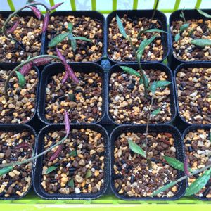 本日、モナデニウムルベルムの 挿し木・葉挿しに挑戦中‼️です。 12個ありますがみんな育つといいな😁