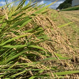 コシヒカリ🌾 晴れの日が続かず、延び延びの稲刈りがやっと始まりました(o^^o)🌾