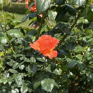 7/18 暑中お見舞い申し上げます。酷暑を無理なく乗り越えていきましょう。 去年の秋にゲットした見切り品のバラ鉢フェローシップ「むねちか」(鉢の名前)💕 春になってからはシュートを2本も出してスクスク育っているのだけど、どうやらブラインド枝のようで、身の丈50センチで一度カット、今日は身の丈80センチになってる😅 傷んだ葉っぱの鉢が多い中、この子の葉っぱは綺麗なので、切っちゃうのがためらうところ。しばらくは様子見です。。