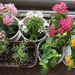 今月の思わぬ雨天続きで外壁リフォームが遅れ、今も部屋の中に避難している鉢植えたち 寒暖差がないためかランタナは絶好調✨みたいです😊