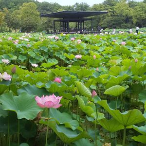 今日のお花「ハス」です。😊 先日7月8日に万博公園・日本庭園の「ハス池」をpic撮りしました。📸🌺🍀🍀😄🤗🌞✌️