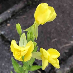 おはようございます😃 道路の、コンクリートの隙間から、待宵草の花が…朝の7時半なのに、花は萎んでいました。 夕方から朝まで、咲くと言われています。