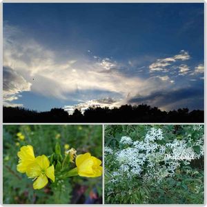 今朝の空 ステキ ✨✨ 黄色の月見草の用な花 白い のは河川敷に咲いてました。真っ白で 綺麗でした。 😆