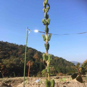胡麻の、 どうやら花芽が付いたように思います。 たくさん、小さな胡麻を撒いたのですが、 育ってるのはこれ1本‼️ 初めてなので、どんな風に咲くのか? わからないのですが、楽しみです🎶😁 🏷金曜日の蕾たち 参加します