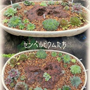 🏷️センぺルンルン木曜日に参加させてください😋 庭にある平たい重い鉢に9種類を石と一緒に植えてみました(≧з≦)びっしり増えたらうれしいです(≧з≦)