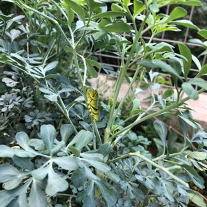 苦手な方、ごめんなさい🙏 ちょっと前から、フェンネルにアゲハの幼虫がいて、気付いたときにはまあまあ大きくなってたし、好きなだけお食べ・・・と、あきらめて見守っていました。 写真は3日前に撮ったものです。1株のフェンネルに9匹居ましたが、毎日2、3匹ずつ居なくなり、今日とうとうみんな居なくなりました😱 サナギになるために、旅立っていったのかしら❓その辺を捜索しましたが見つかりませんでした🤔 フェンネルがボウズになる前に、旅立ってくれてホッとしてます😅