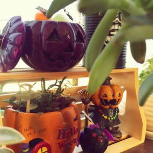 お部屋の多肉コーナーを精一杯のセンスでハロウィン仕様に。笑 手前の多肉は秋麗です☆ こちらも精一杯秋っぽくしてみました。笑 うーん、このセンス…_| ̄|○