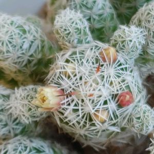 ①象牙丸 今年も3回目の花 ・7月下旬にモフモフが増えてきたら、蕾が出る ➡️8月上旬に花が咲く。 花は8月上旬~11月上旬に開花。 *今年は、初の子株が増えました! 7月中旬に突然9個現れ、今では11個になっています♪(*・ω・人) ②ペンタカンサ 今日で連続3日咲き続けています! ③緋花玉 もうすぐ咲くね♡ ④縮玉 成長点から新しい棘とモフ毛 ⑤金盛丸 一夜咲きしたあと ぐったりします(*‘ω‘ *) ちょんまげみたいで、なんだか可愛らしい♡