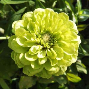 ジニア(クイーン·ライム)🍀 カールされた花弁が 目立ちます♪ シックな花色💚🍃