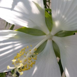 木陰でひっそりと咲く白木槿 🏷️2023涼を呼ぶ夏の花草木に参加 3種目は木槿を選びました。 ムクゲはアオイ科フヨウ属 🏷️企画でいつも悩むのは あまりに植物の種類が多く カウントする時、票が割れる事。 『科』や『属』で大きく くくろうと考えてました。 でも、自分も皆さまも 熱い思いで選んだ4種💕 素人の甘い判断ですが エントリーの通りカウントしようか とも考えています。