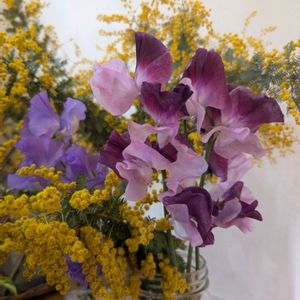2025/03/20(木)💛🩷💜( ˶'ᵕ'˶)🫶 花たちの戯れ…(◍´ᯅ `◍)💕 ハァハァ(੭ु//́Д/̀/)੭ु⁾⁾ ハァハァ( ง//́Д/̀/)ง⁼³₌₃ ええや〜〜〜ん⁽⁽꜂(꜀(⑉ˎДˏ⑉)꜆₎₎’`ァ’`ァ 今年も大好きなスイートピー そしてミモザと共に春を迎えて幸せです🤗💖 ハートマウンテンをあなたに…🫴︵ᡣ𐭩