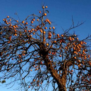 以前撮った写真からピックアップしています。 今年は台風でかなり落ちてしまいました。 日本の柿の多くは渋柿ですが、いくつかのそうでないものの一つが富有柿です。