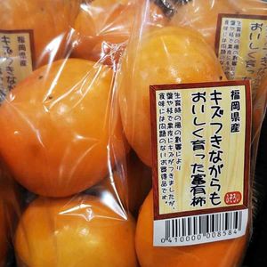 キズつきながらもおいしく育った富有柿 なんとも語りかけるPR😚 キズは美味しい証拠です! 🍈はキズが網目になって美味しさが増しますからね😉