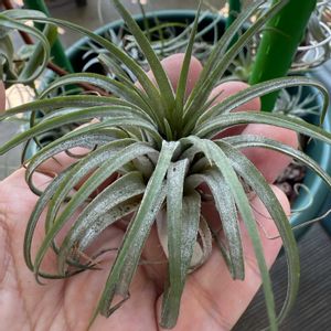 我が家のチランジア・イオナンタに少し変化出ました。子株が出てきていて、黄色くなって…でも黄色いからといっても枯れてるわけではないようです。 他のものは ②品種わからない子。花咲いてる時にお迎え。 ③最近お迎えしたイオナンタ・ルブラ。赤くなるらしいので比較になるかな? ④⑤ハリシー。お迎え時より立派になったので、ネットで見つけた方法でハンギングを手作りしてみました。 現在、みんな普段は軒下にぶら下げているのですが…以前あったか細いシーディアナは、出勤中の天気の急変で強風が吹き、どこかへ飛んでいってしまいました😭 そして、夏は暑かったけれど、じわじわとした変化を見せてくれたチランジア達でした。