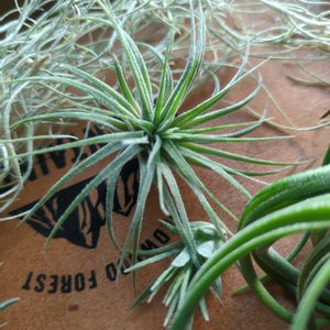 エアプランツを見よう見まねでコルクに着生させてみた。 左上はイオナンタ、中央がストリクタ。 下2つはチランジア表記だったけど、バルビシアーナとフンキアナじゃないかと思ってる。 全てダイソーで揃えました✨ 奥の浮いてるのはダイソーのメモスタンドを使ってるんだけど、いい感じで全部これ使いたい。