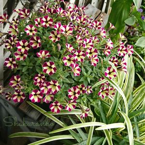 ✨❇️おひとりsummer.•*¨*•.¸¸♬ スーパーチュ~(^з^)-♡ニヤッ😁 まるでハンギングバスケットで飾ったような光景で~す が、しかし 鉢植え、上から撮りです 毎年、ペチュニア類を 他の花と寄せたりハンギンに していましたが 切り戻しができないくらい ショボくなったり 溶けてしまったり、と 残念な夏。。。なぜ こんな風にモリモリになった事がなかったので 思い切ってひと鉢に 渾身の一種植え! ドーン 上手にお育ての方からすれば 大袈裟とお思いでしょうが 欲張りな私としては 色々詰め込みたくなる衝動に かられるのですよ〰️ なのでこれは私の中では 革命的な試みなのです だけどやっぱりペチュニアが 欲しかったのは この環境なのね~ アッサリ認めちゃう、ちゃう💦 思い起こせば数々の ペチュニアさんたち ☆ももいろハートさん ☆チェリーコークさん ☆モンローウォークさん ☆ナイトスカイさん、他さん 。 。 。 ごめんなさい 人(눈_눈) そして、ありがとう🍒 お盆なので追悼の意を込めて 🏮🕯️🥒🍆🕯️🏮 現在ヤブランは花が咲いていないけど 今日の花に便乗です 「今日の葉っぱ」ってゆうのが ないからね