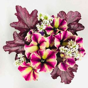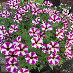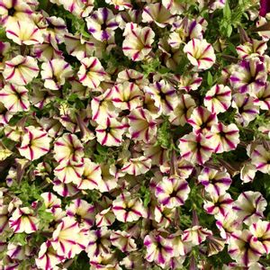 スーパーチュニア ラズベリーチーズ 美味しそうな名前に惹かれて♥ ピンチしなくてもちゃんときれいな形になる優秀な子 1ヶ月でもりもりです♫ 白に見えるところは本当は薄い黄色。 直射日光だと薄い色はとんてしまう💦