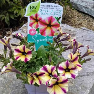 スーパーチュニア☆ラズベリーチーズ😊 1週間前に購入しましたが、本日お店に行ったら全て売り切れてました💦 やはり人気種はなくなるの早いです😅 名前の通りスーパーな成長を見せてくれる事に期待してます✨