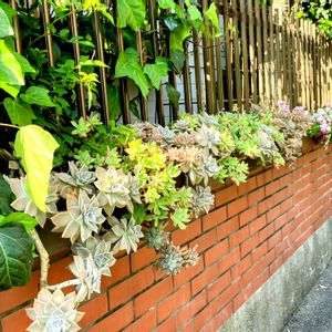 多肉植物がいっぱいありました。 通り道のお宅の塀の上に 朝のウォーキングで🚶♀️