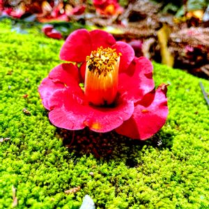 苔に椿 龍福寺卍境内 朝のウォーキングで🚶♀️