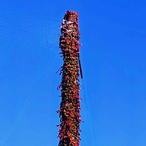 電柱の蔦の紅葉🍁 朝のウォーキング🚶♀️ 朝の散歩道 電線がいっぱいなので、ツールを使って消しました。