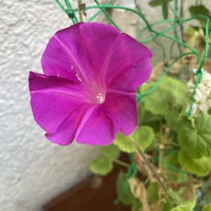 今朝の朝顔さん💗 💗ハンギングスタイルで💗 観葉植物のような葉っぱとステキなcolor😍 曜白と入れ替わりに咲き出して🤭 毎日💗楽しませてくれてます🎶 吊るした長さは150センチ位かな😁 必須❗️夜のパトロール⚠️ アサガオ好きな虫に注意してくださいね♪