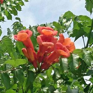 "アメリカ ノウゼンカズラ" 北米原産 落葉つる植物 ラッパ型 オレンジ赤の 可愛いお花