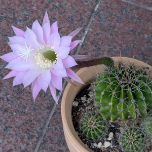 おはようございます🌵🌸 エキノプシス🌵🌸 夜開咲きでは珍しいピンク花🌵🌸 2鉢同時に咲きました🌸🌵🌸🌵🌸