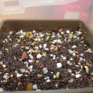 ダイソーのエキノプシス同士を交配してできた種を蒔きました 現在5日目で、発芽が進んでいます