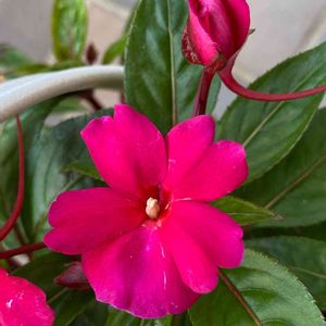 ニューギニアインパチェンス。 いつの間にか2つ咲いてた🎵 この子も順調に育ってます🍀😌🍀