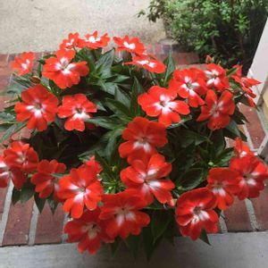 こんにちは😊 花数が増えて、キレイに咲いています🧡 サンパチェンス。 でも、欲を言えば、緑の隙間が花で埋まって欲しい😅😁 これが、ピークのようです😊