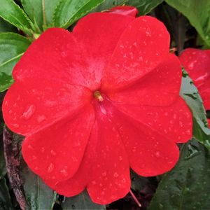 目の覚めるような真っ赤なインパチェンス 鬱陶しさを一瞬吹っ飛ばしてくれます。