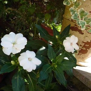 ニューギニアインパチュンス🌼 覚えにくい名前💦💦 初めて見た斑入り品種「スプラッシュホワイト」かな?? 花を咲かせ華やかで、抜群でした🌼