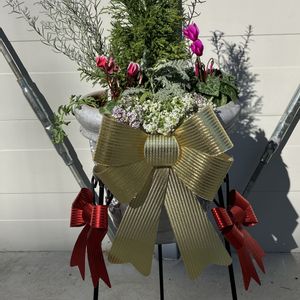 行き当たりばったりで作った初寄せ植え💠 ツリーのてっぺんにリボンとベルを飾りたい🎄